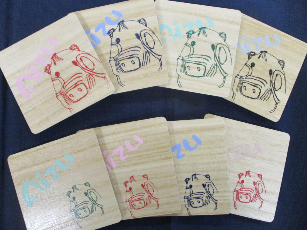 オリジナル桐コースターは『赤べこ』の他にも、『起き上がり小法師』、『赤べこの《ぬ~ん君》 』