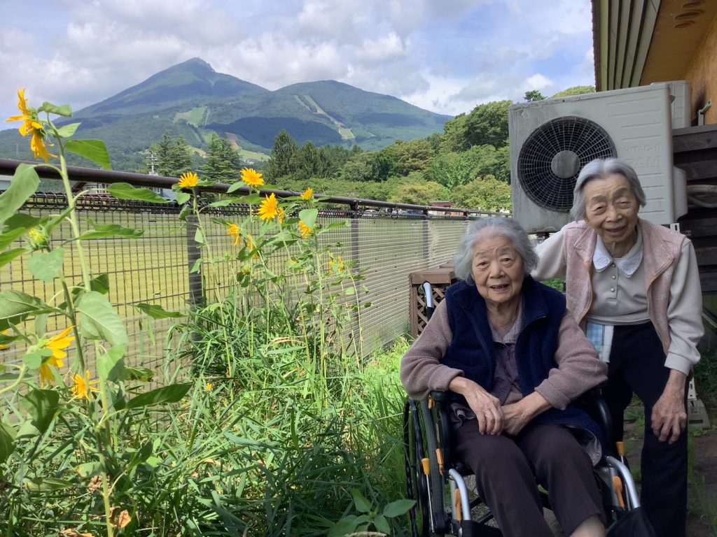 裏手の磐梯山がよく見える場所のひまわりは遅咲きでしたが無事に咲いてくれました🌻