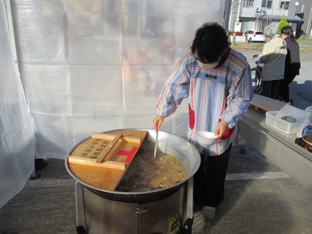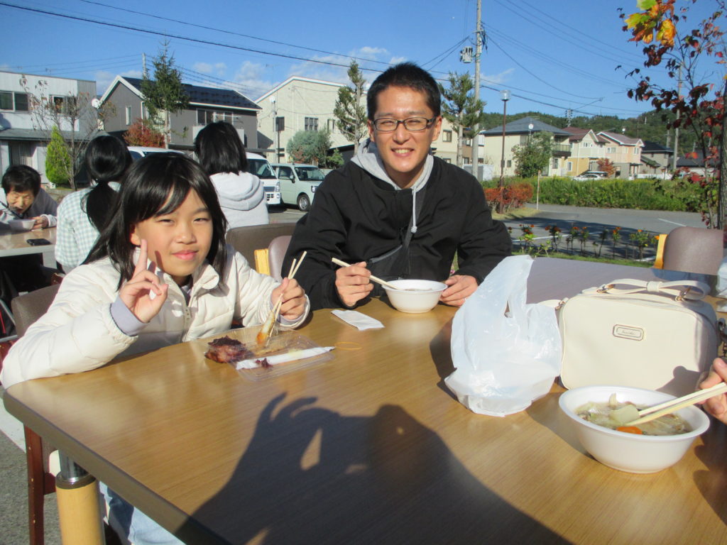 いも煮も美味しく煮えて、お客様の知人の方が「手伝いますよ」急遽、お手伝いをして頂きました。