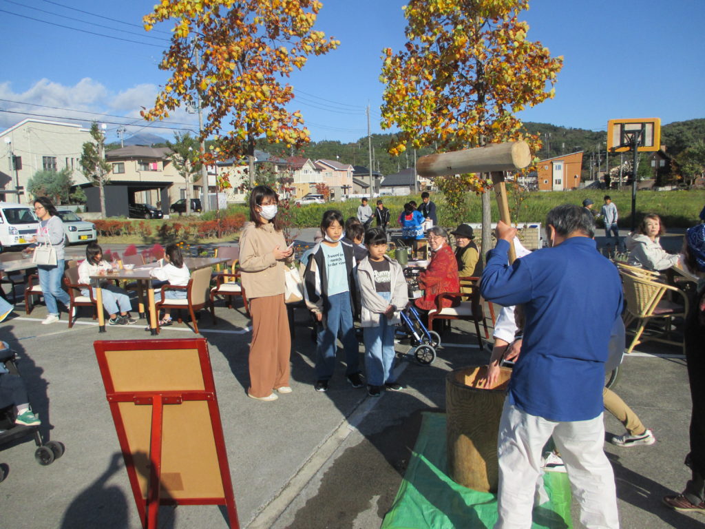 子供たちも交代で餅つきをしました。かけ声に合わせて「そ~れ!よいしょ!よいしょ!」