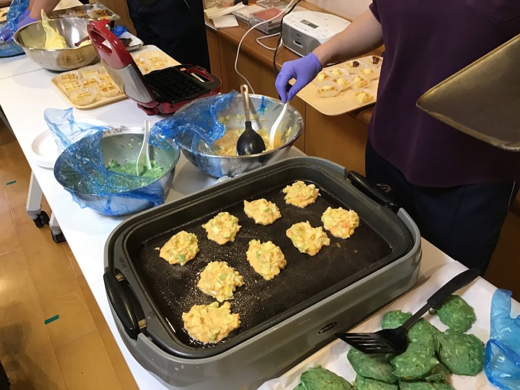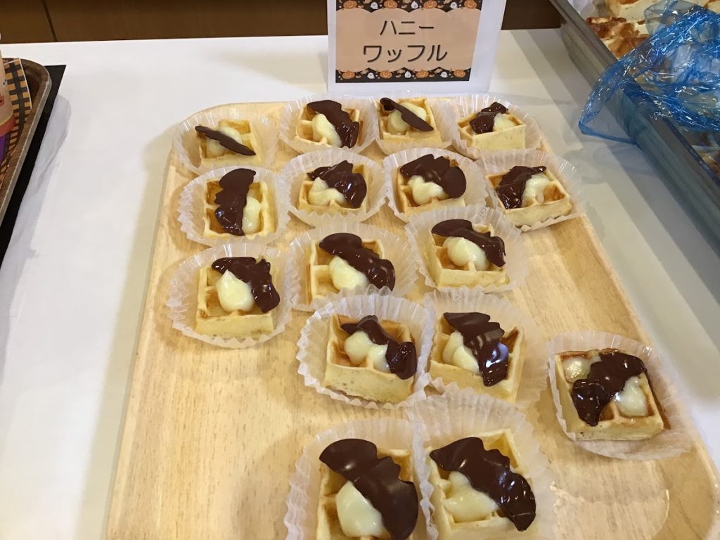 今年のメニューは、厨房職員手作りのワッフル・お好み焼き・栗羊かん・チョコレート