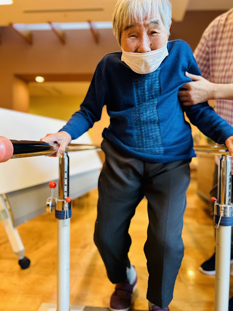上半身、下半身、有酸素運動、そして歩行訓練など身体機能をみながらメニューを組み、実施しています![]()