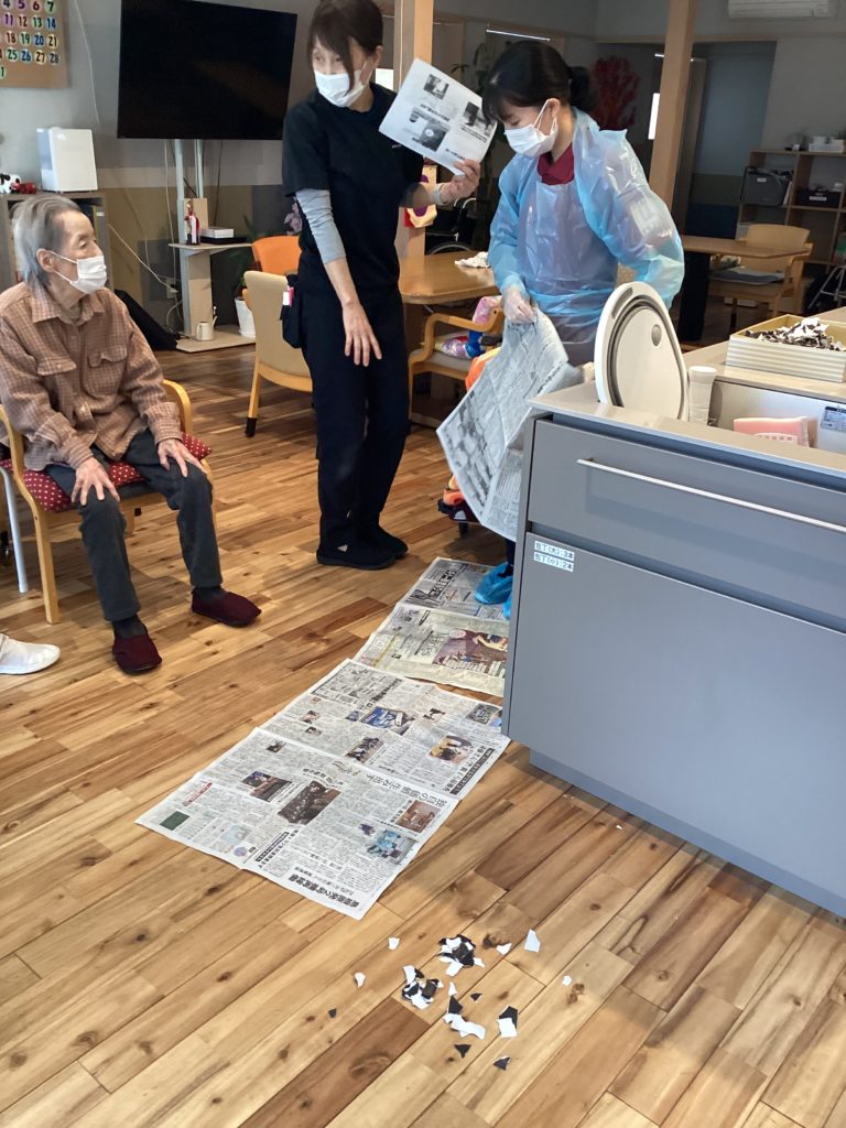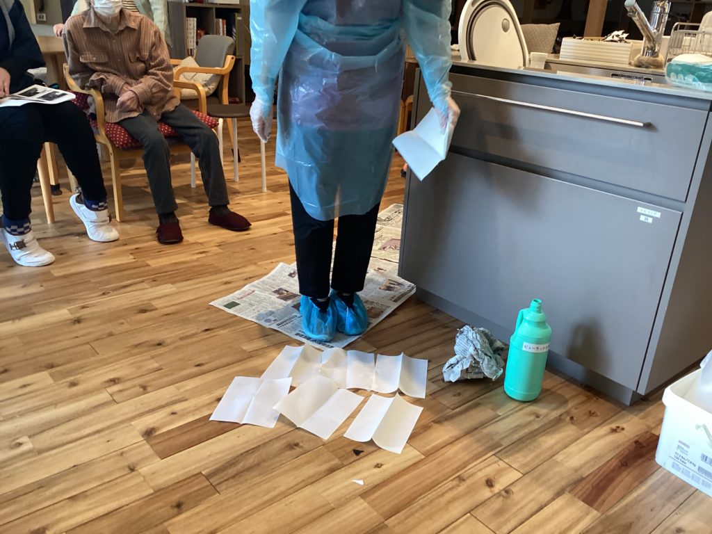 もしものことを考えて、内部研修で吐物処理の方法を確認中💡