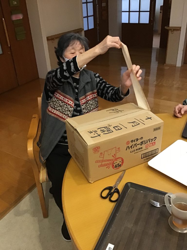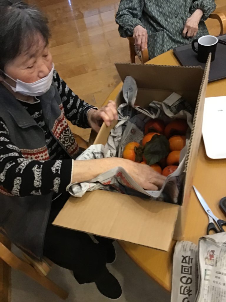 先日ハーモニーハウスで採れた柿をお客様とさわしたことを覚えていますか?
