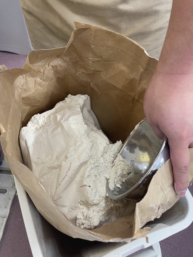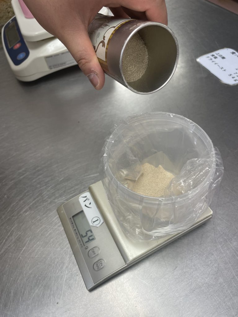 計量と言っても様々な物がありますが、どれも計り間違えると味が変わったり、膨らまなかったりするので、とても集中力と正確性が必要な作業です。