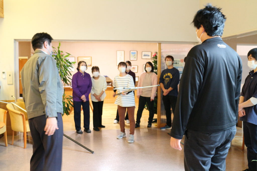 不審者に対しての初動の動きやサスマタの使用方法など詳しく実践を交えながら指導して頂きました。