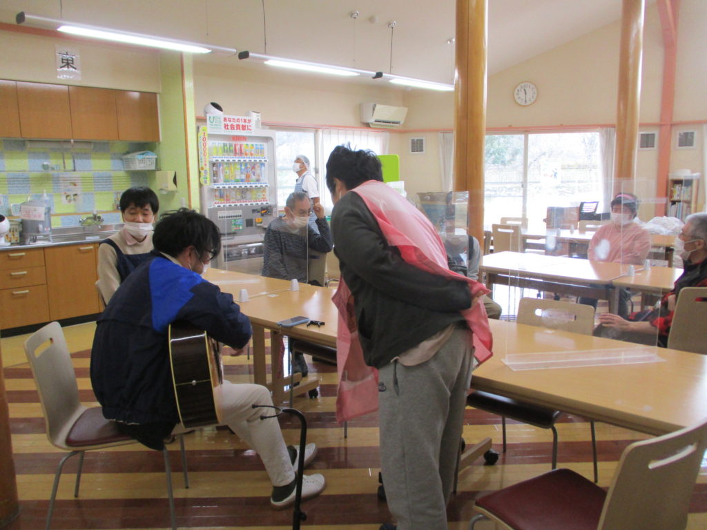 ギターの音色と歌声を聴いて皆さん食堂へ続々と集まり、