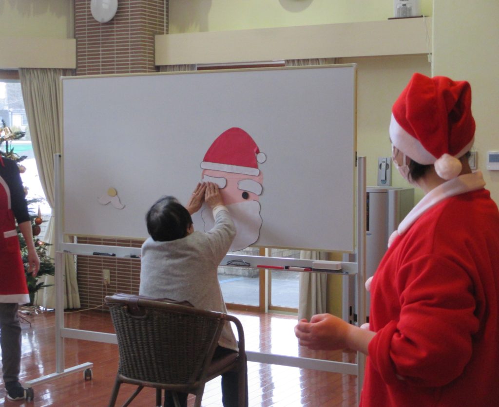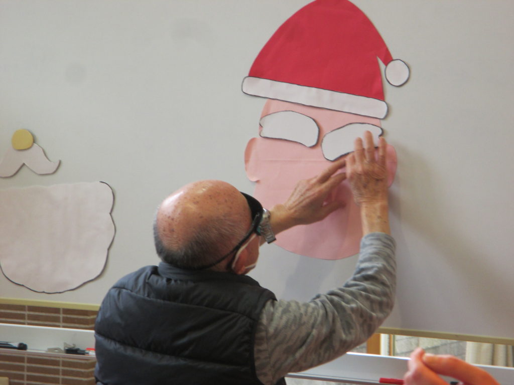みんなの声を頼りに、応援のおかげでサンタクロースの顔が出来上がりました。