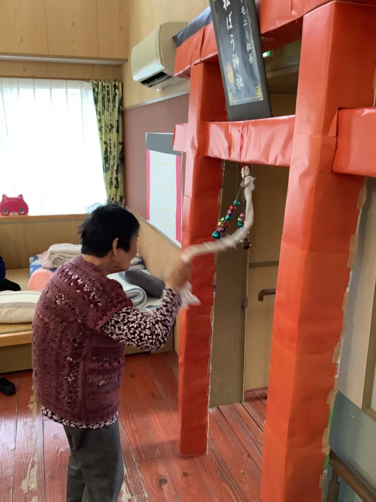 (この鳥居はお客様と一緒に牛乳パックで作りました!)