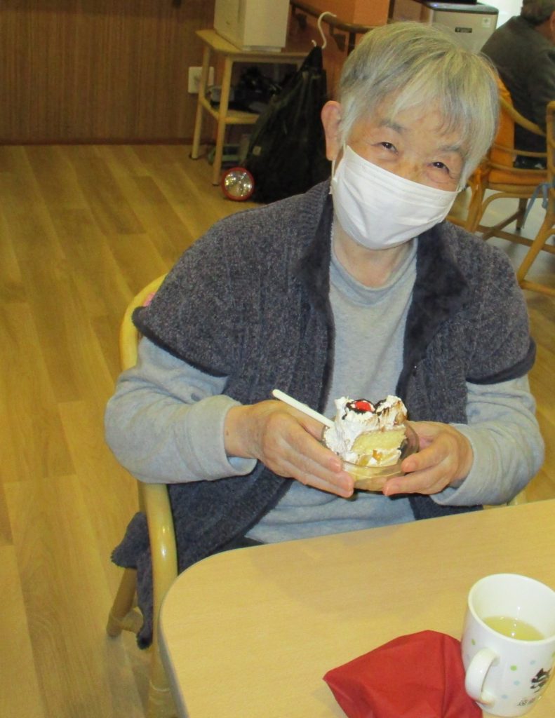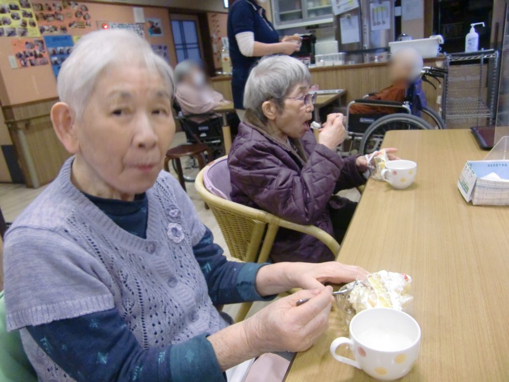 「美味しいね」と笑顔でケーキを召し上がりながら、お隣同士での会話も弾む様子に、