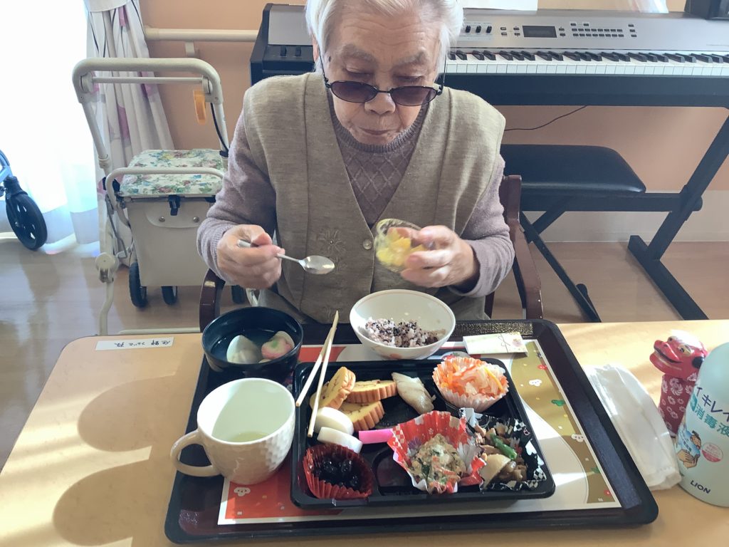 今年のお昼もみどりヶ丘の厨房から、おせち料理が届きました😄