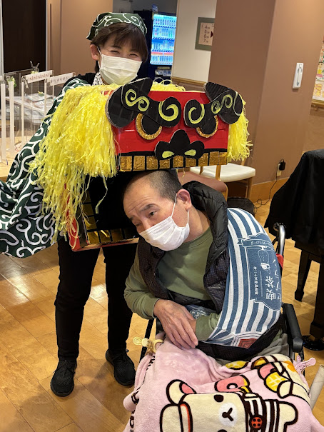 次に、デイサービスにきた獅子舞に頭を噛んでいただきました!