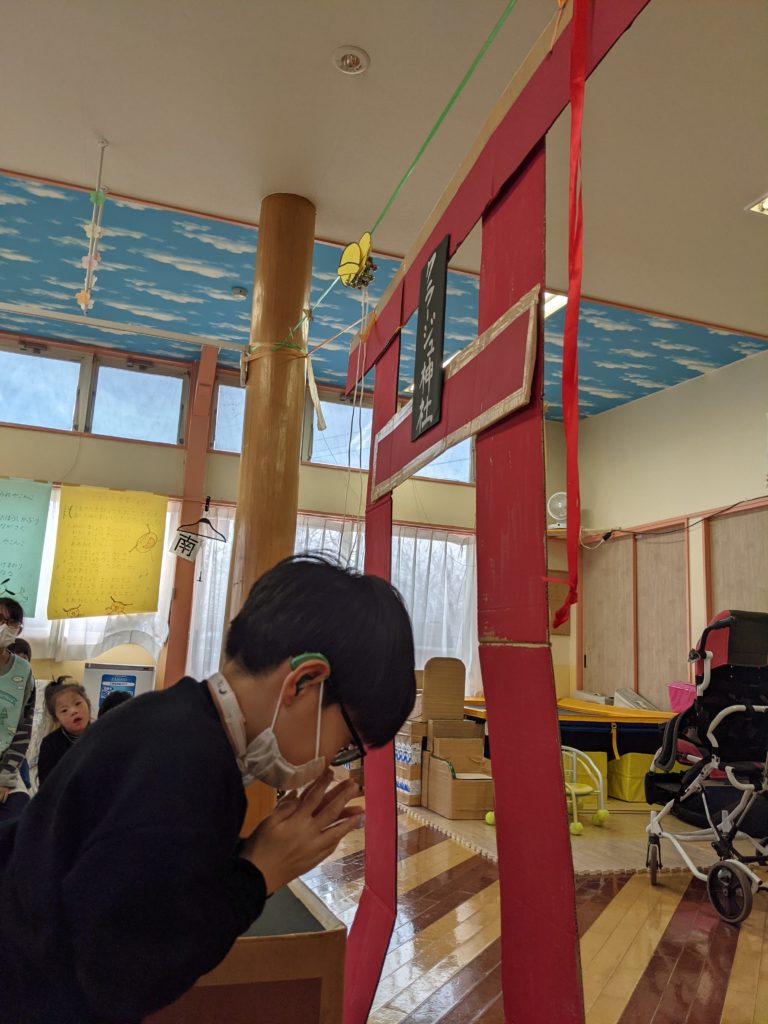 初詣ごっこでは、大きな鳥居がお出迎え!大迫力でしたね!