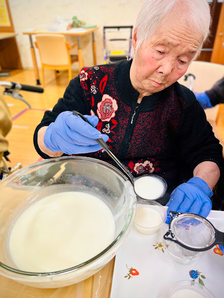 そこでハーモニーハウスデイサービスでは、いちごを使用したパンナコッタ作りに挑戦です!