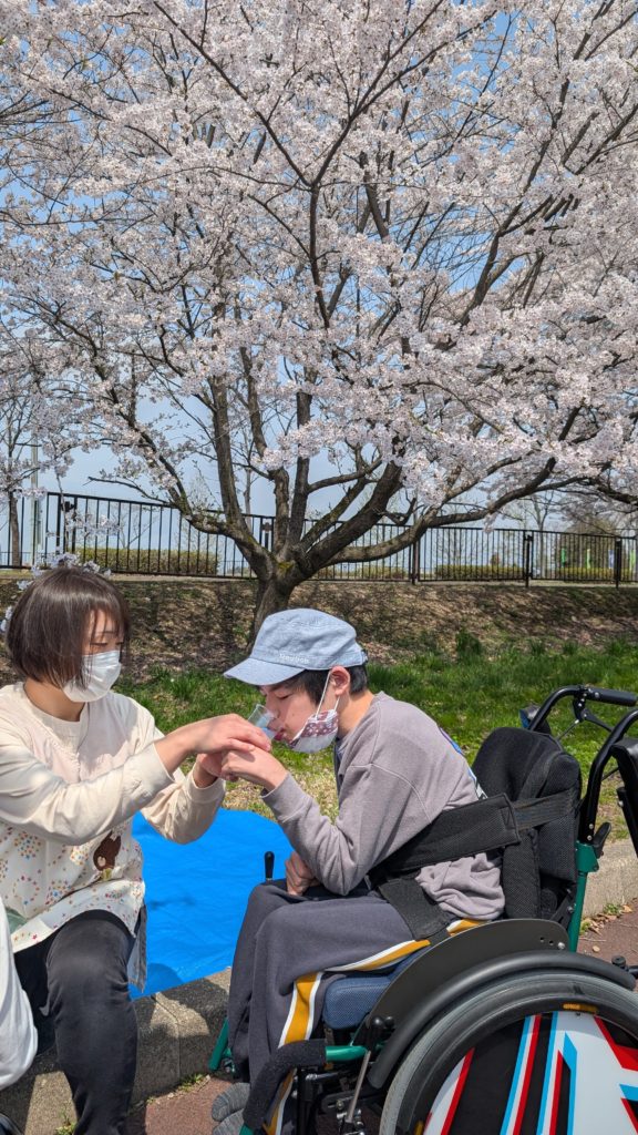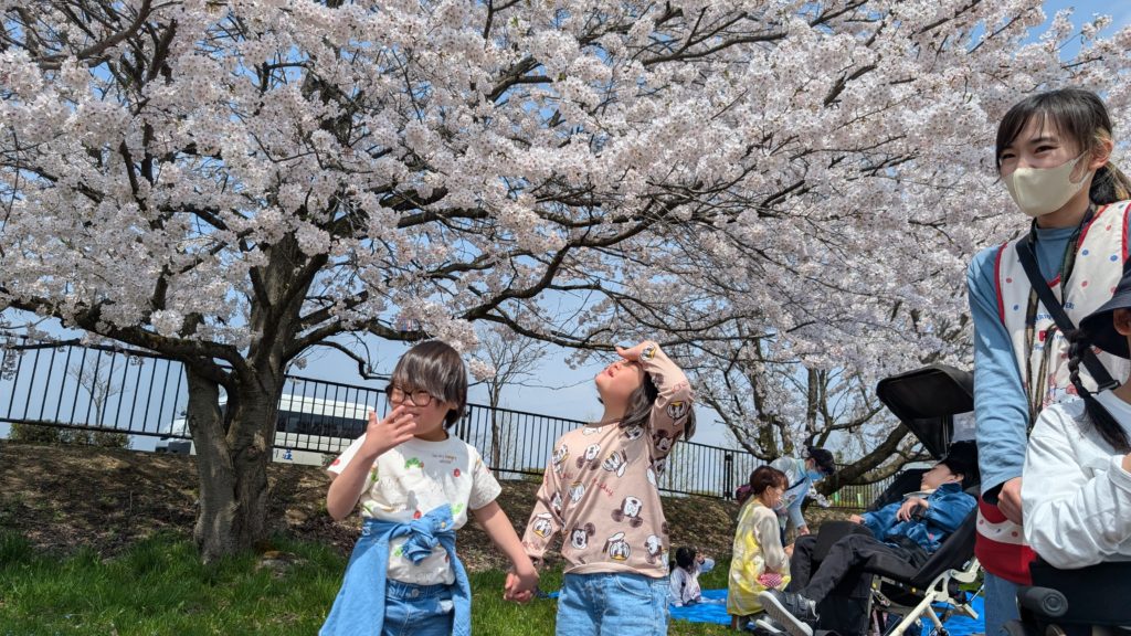 さくら満開♪【コパン・クラージュ】 コパン クラージュ 2025年4月19日 ついに会津若松も、桜が満開になりました🌸 みんなで、会津総合運動公園にお花見に出かけました! お天気もよく、まさにお花見日和でした~ ブルーシートを敷いて、みんなでおやつを食べて、 とっても楽しかったね(*^^*)