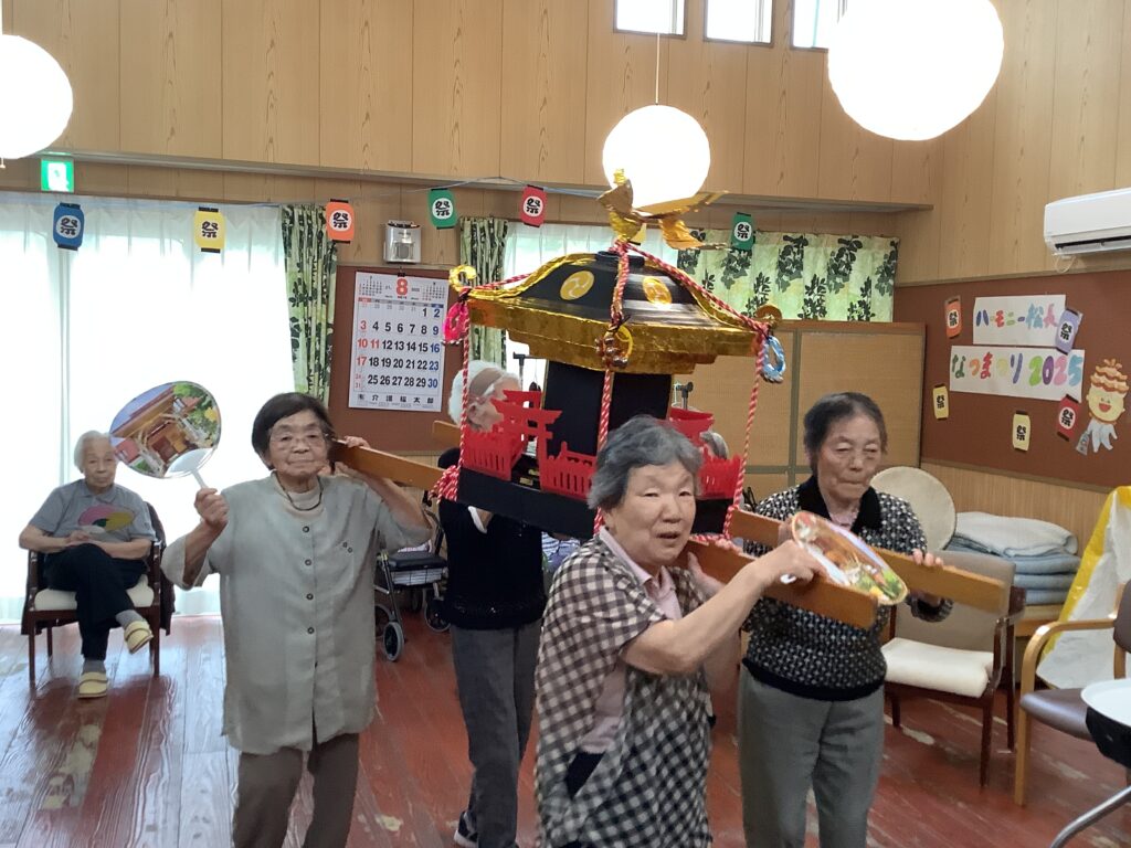 お神輿をかついで わっしょい!わっしょい! ハーモニー松長の夏祭りの始まりです(*^O^*)
