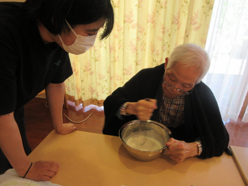 一緒にフルーチェも♪お客様にかき混ぜてもらいました。
