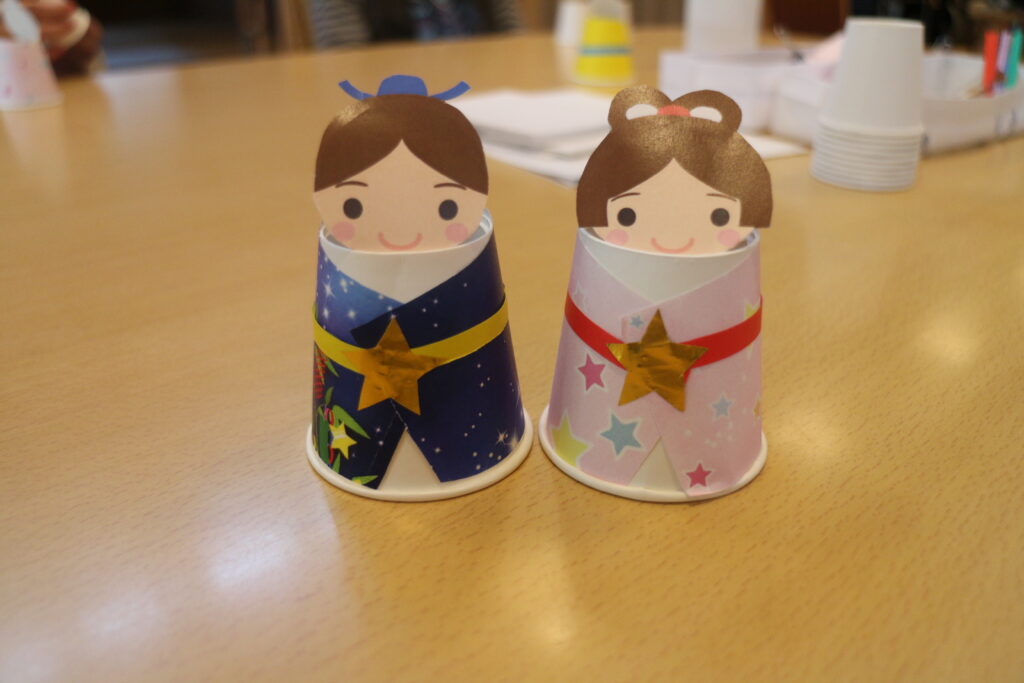 今回は、もうすぐ「七夕」ということで、織姫と彦星作りをしました。