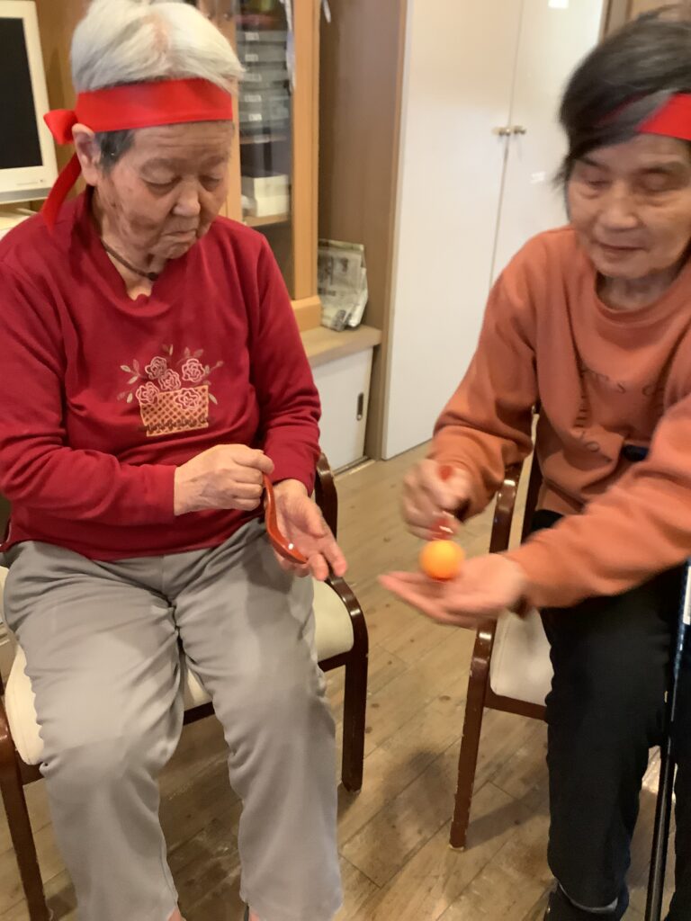 スプーンでボール運び!タイミングの良さと手先の動きが要求されます!落とさないように慎重に…でもスピーディーに!