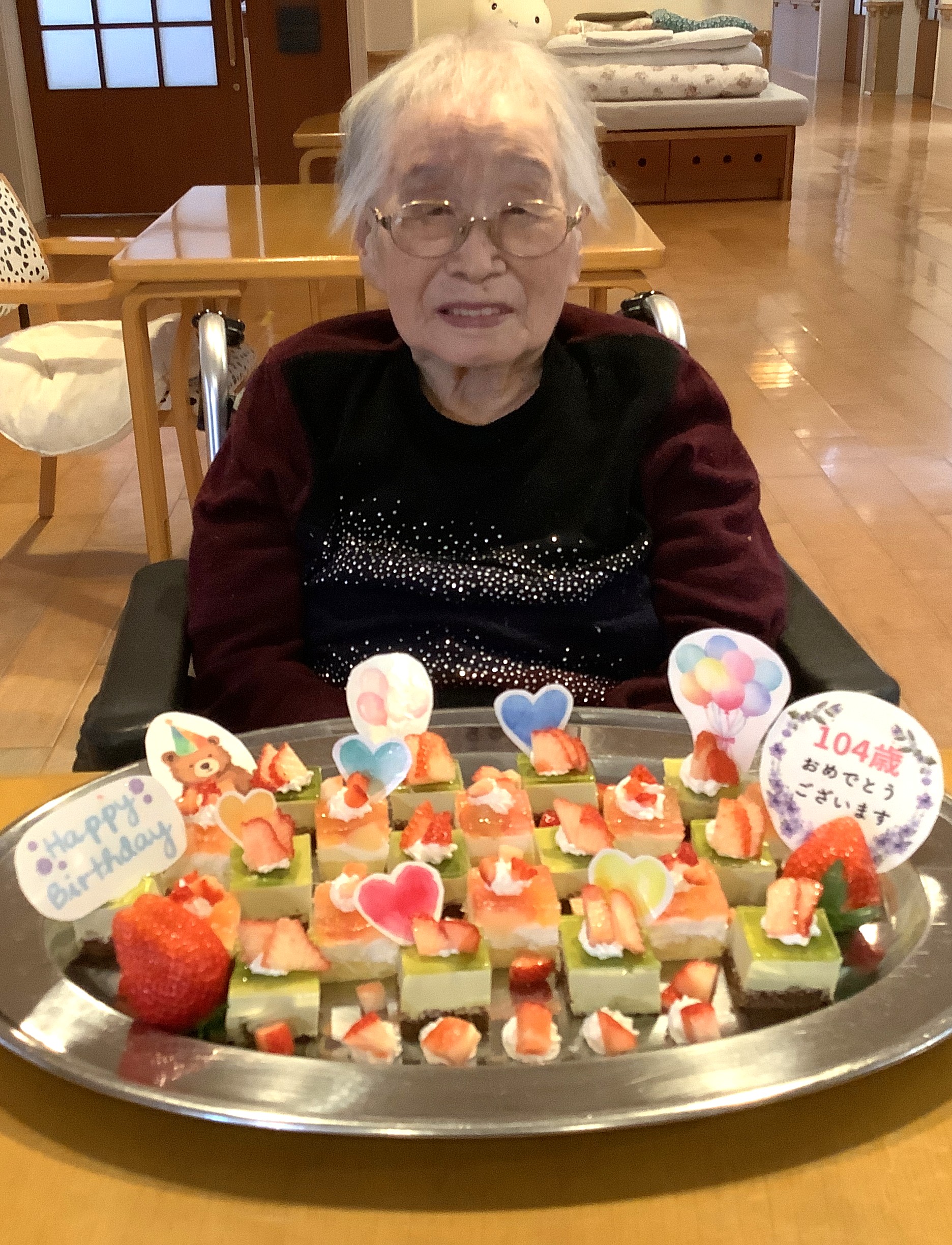 先日、104歳のお誕生日を迎えられたお客様のお祝いを行いました。