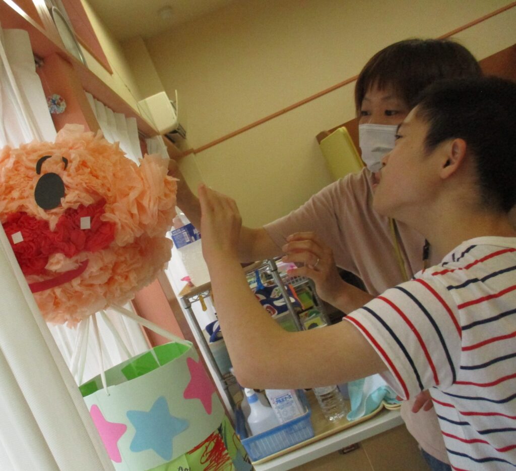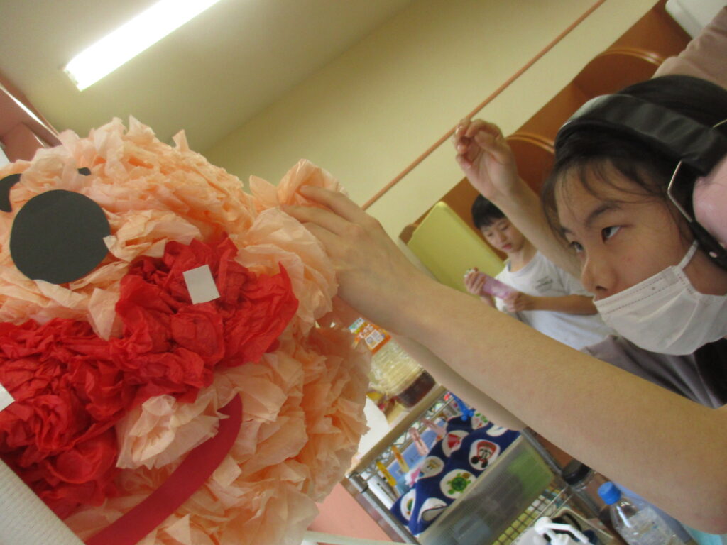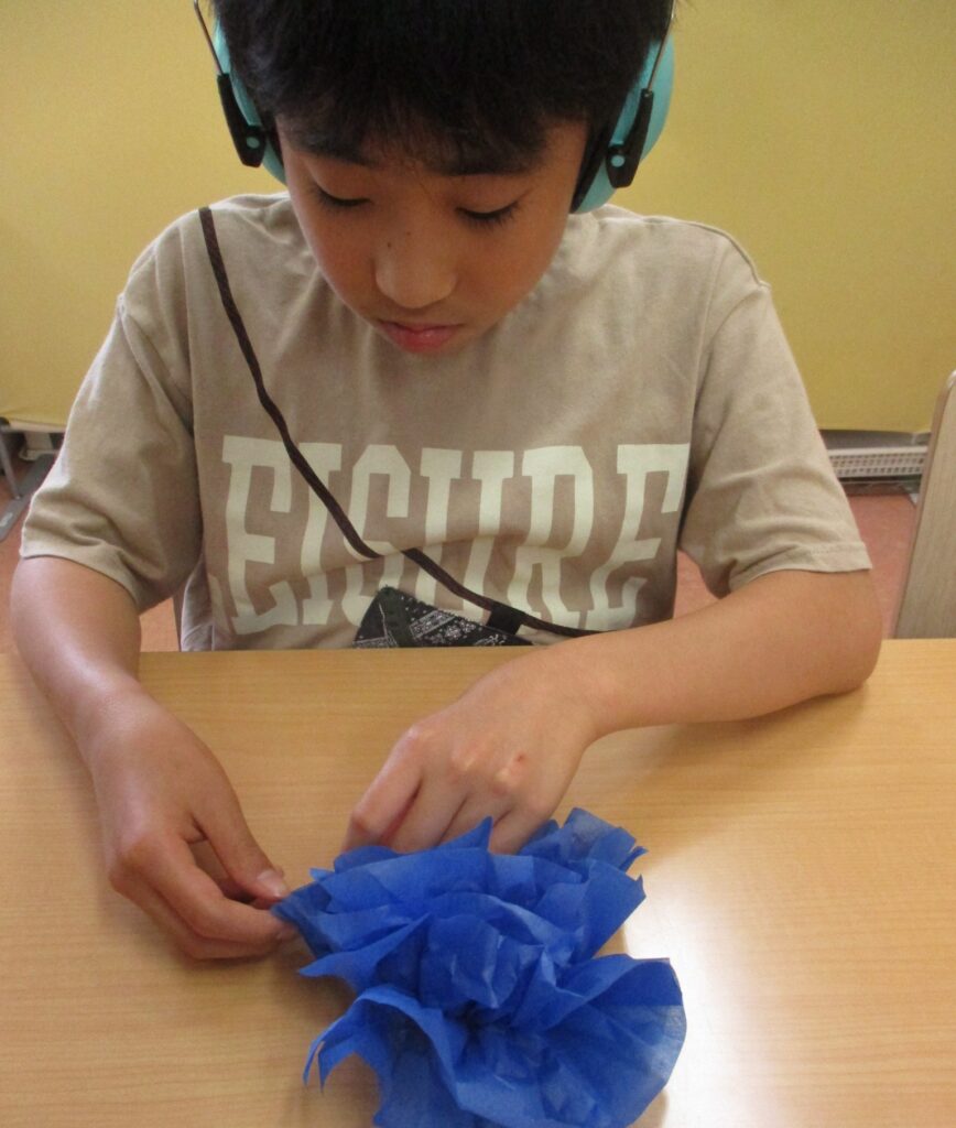 6月から少しずつ分担して、イルカのお友だちがお花紙を折ってくれました。