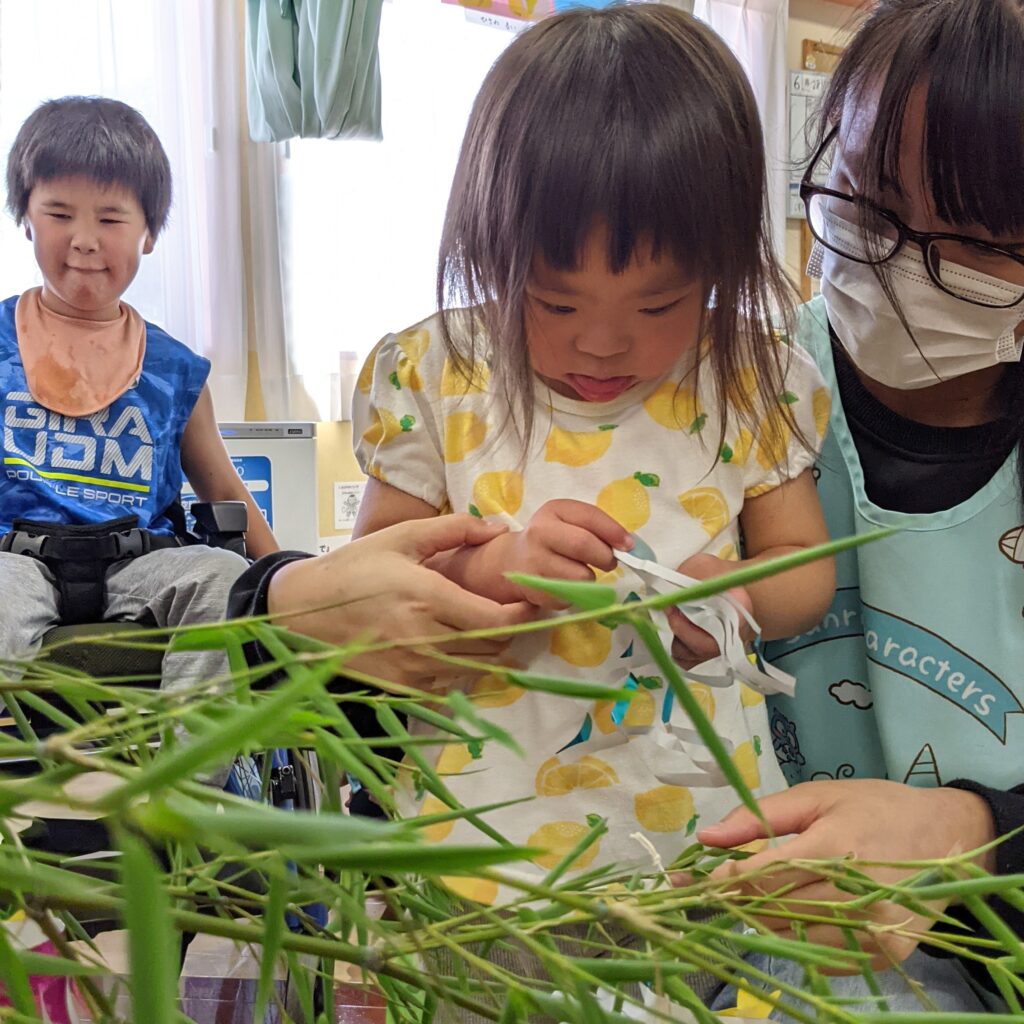 協力して七夕飾りを制作しました!
