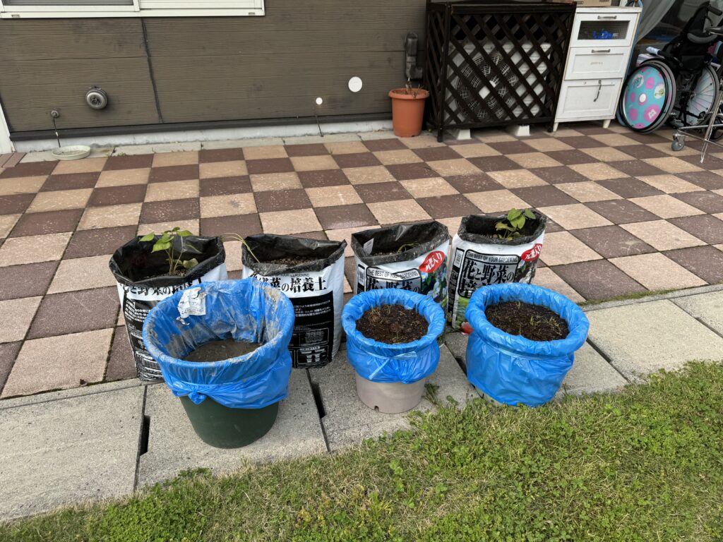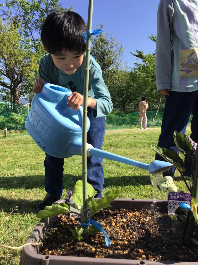 今年はなす、ミニトマト、じゃがいも、さつまいも、お米の5種類に挑戦しています!