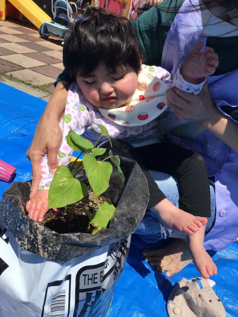 乾いた土、どろどろの土、いろんな形の葉っぱなど、手で触って色んな感触を楽しむことができました✨