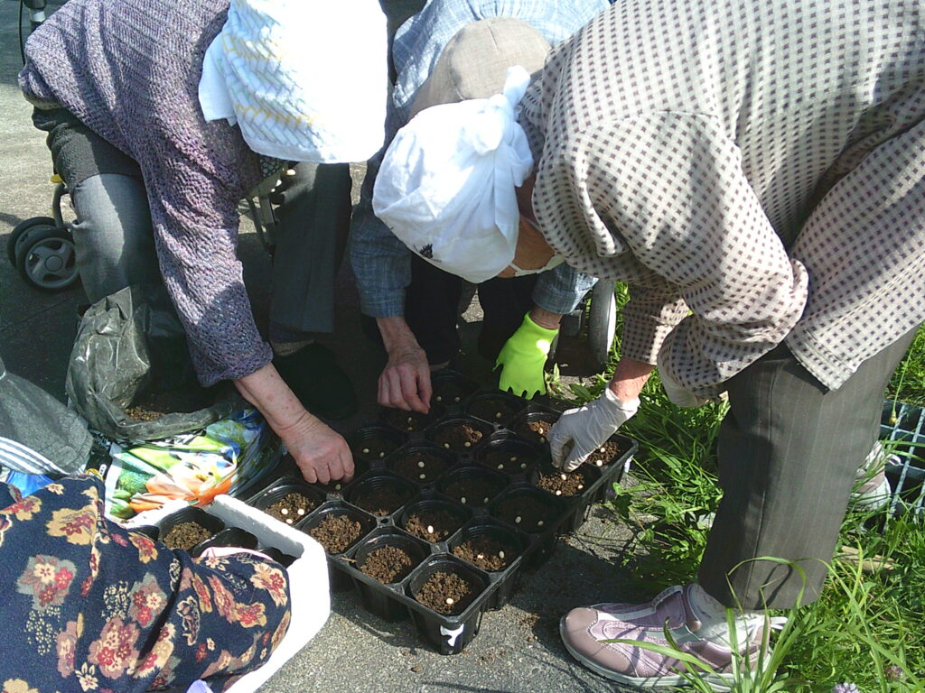 苗の植え付けを終え一段落。バンザーイ🙌
