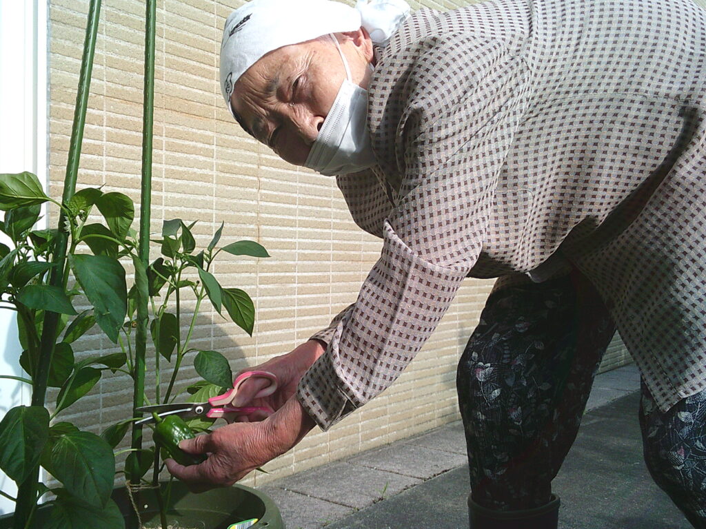 プランターのピーマンを収穫しました!