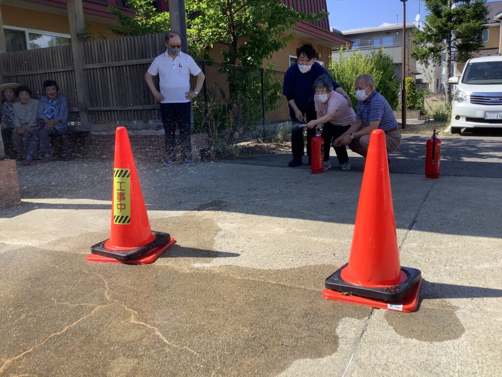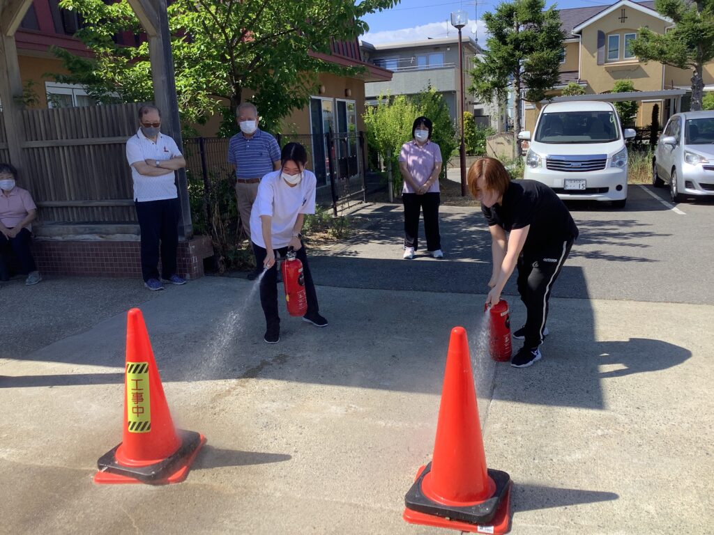 消火訓練では、火の元には近付きすぎないようにとアドバイスをいただきました。