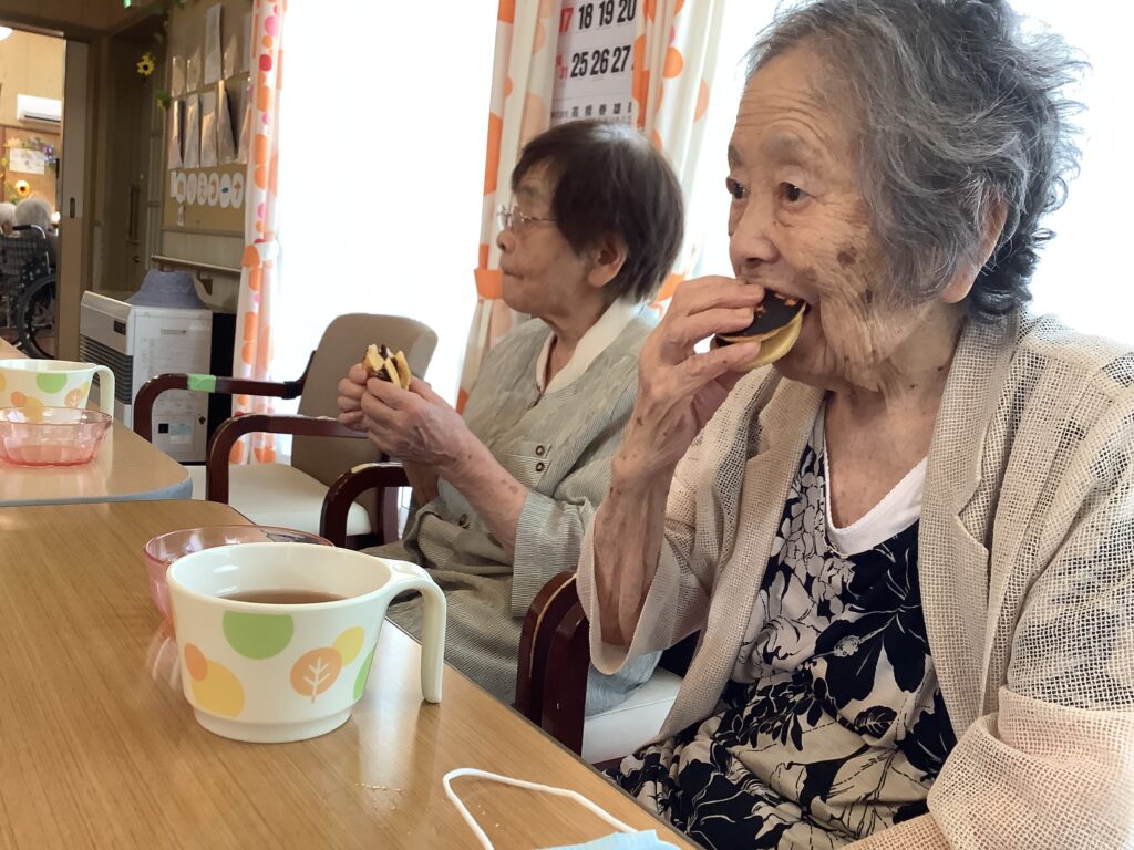 『どら焼き大好きなの🥰』『あんこたっぷりでおいしいね』