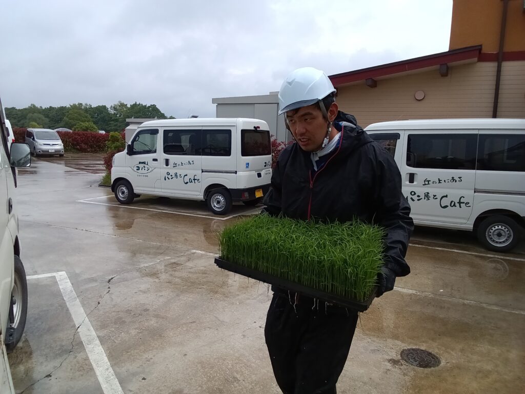 他圃場の方々と農道で事故が起きない対策もミーティングで行いながら移植を行っています。