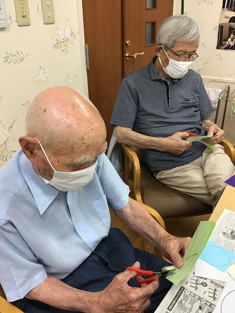 色とりどりの色紙を丁寧に折りたたみ、黒い線にそって、ゆっくりハサミを進めていきます。