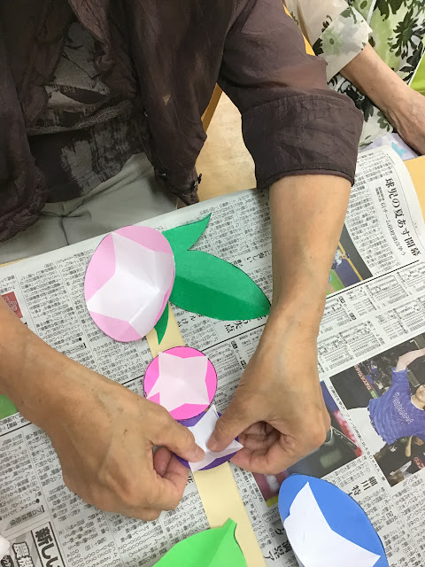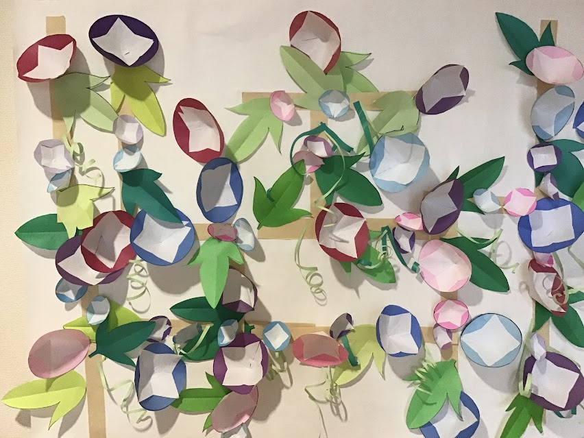 手元の朝顔は少しずつ形になり、皆さんの表情もぱっと明るくなっていきました。