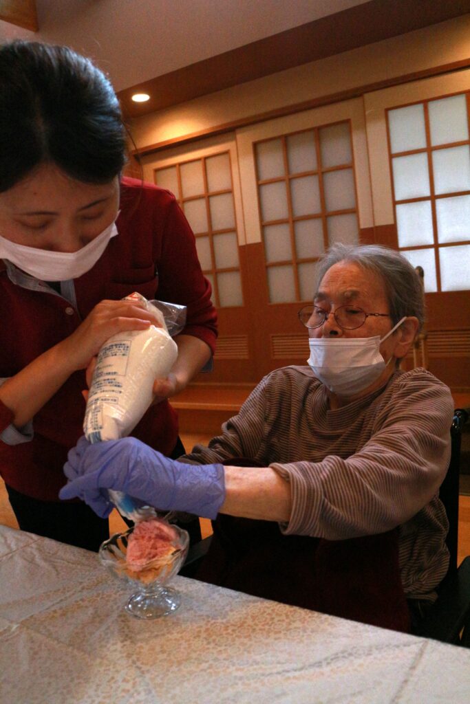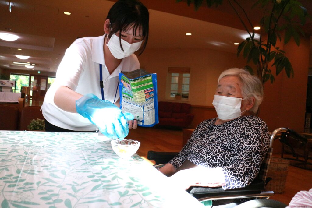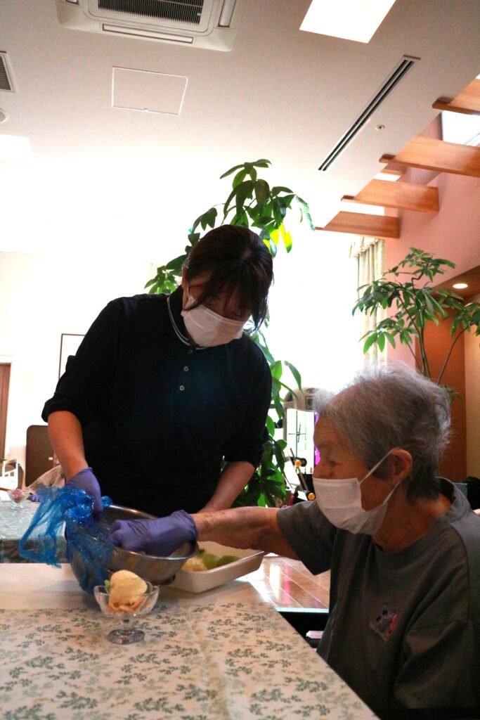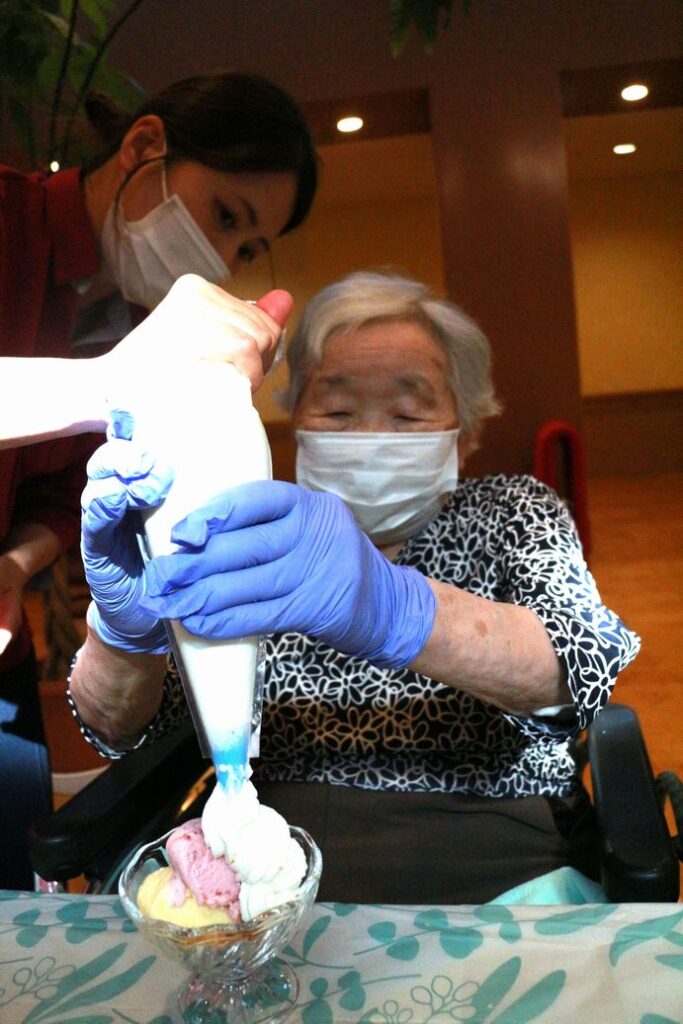 先日、ホールにてお客様と一緒にパフェづくりを行いました!