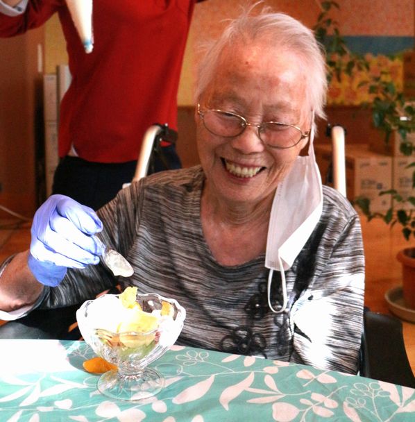今回は、給食管理実習に来ていた会津短大の学生さんにもお手伝いいただき、和気あいあいとした雰囲気の中、楽しく・おいしくパフェづくりができました!