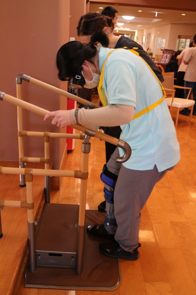 重りの入ったサンダル・ベスト等を着用し、歩行・階段昇降・手作業を行い加齢に伴う身体的な変化を体験しました。