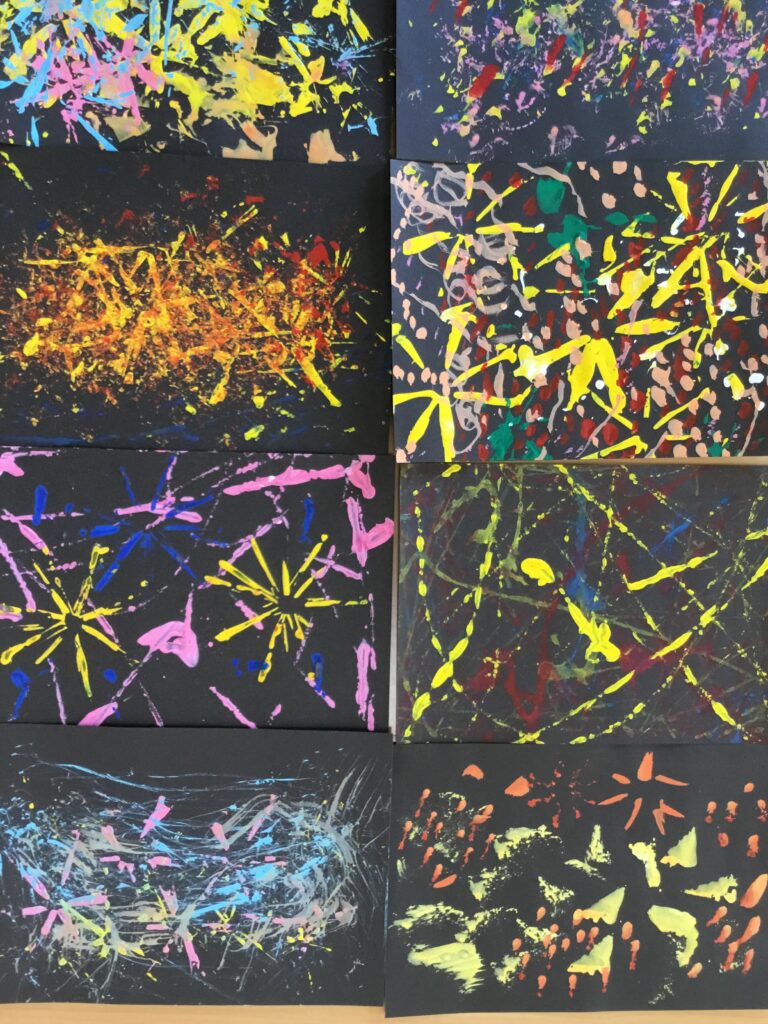 創作活動で花火を作成しました。