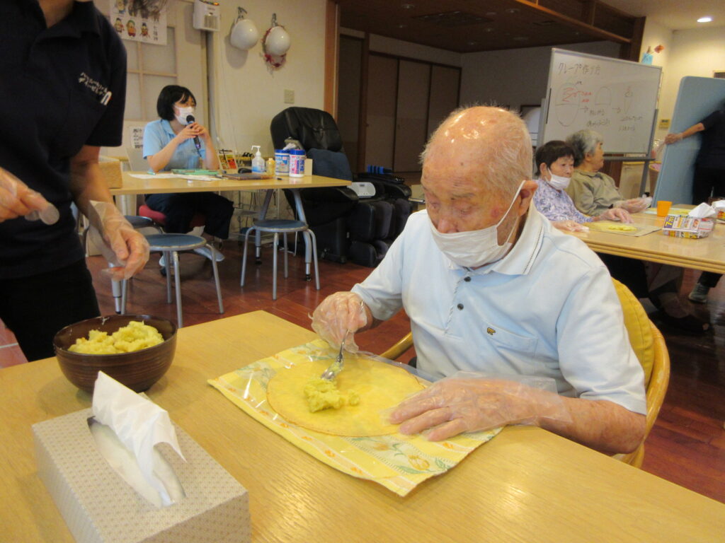 今月は、秋の味覚を楽しんでいただきたく、サツマイモを使ったクレープ作りをしました🍠✨