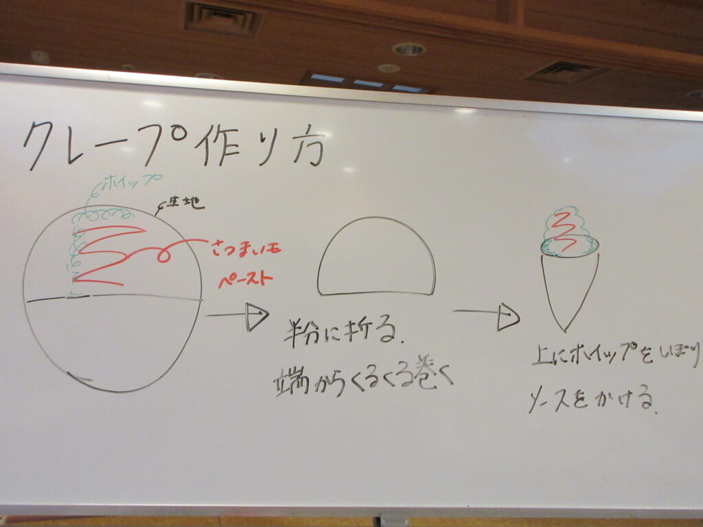 作り方を分かりやすくホワイトボードに書き出し、職員と一緒に♪