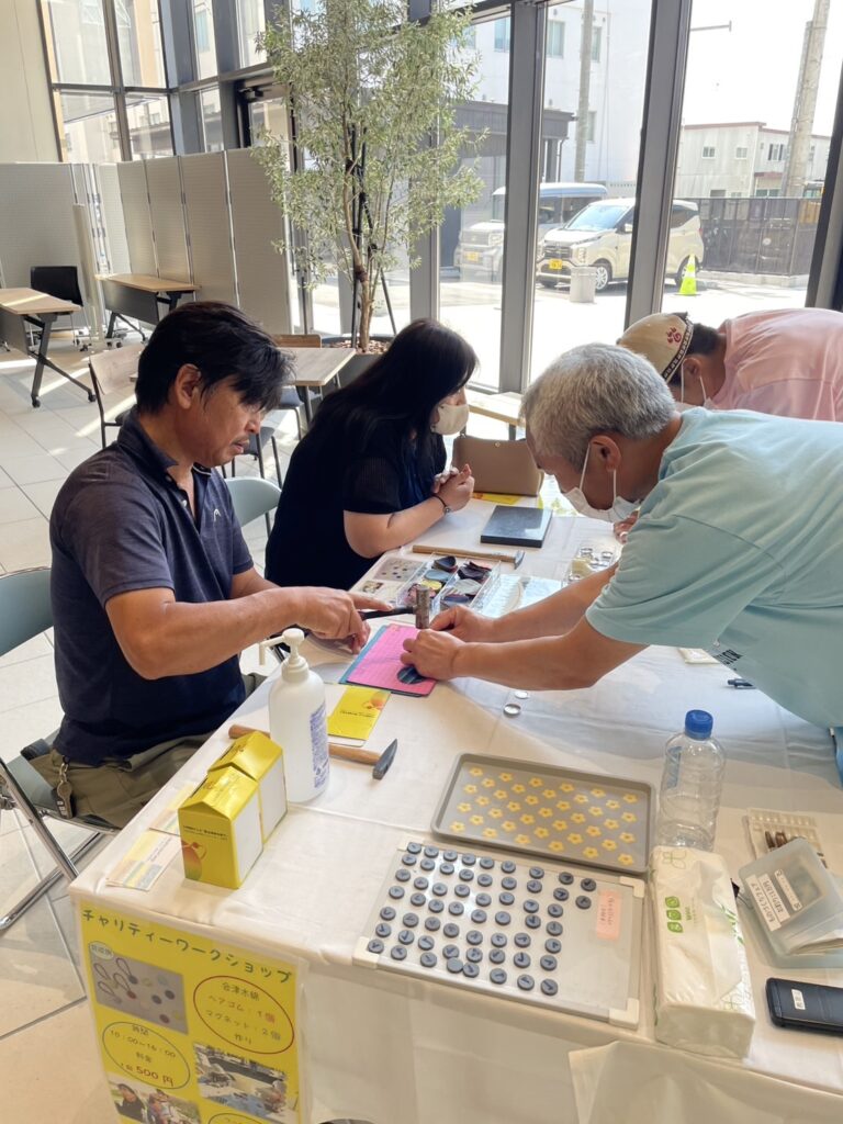 会津木綿や桐コースターの販売、会津木綿チャリティーワークショップを開催し、