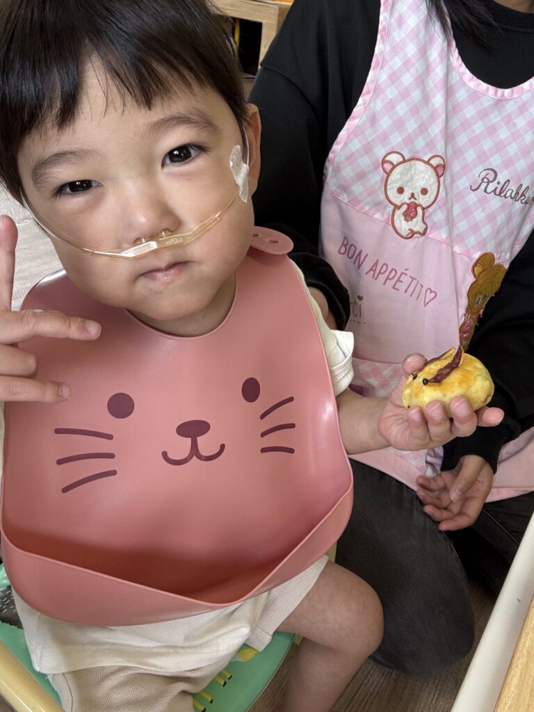 形を整えたら職員さんにバトンタッチ!かわいい耳と目をつけて焼いたら完成🎊