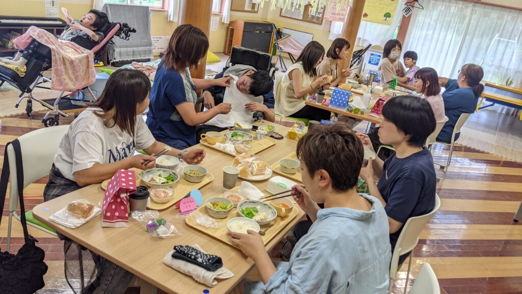 物づくりをしながらおしゃべり、そして給食を食べて・・・。
