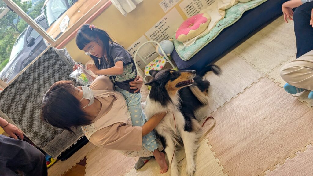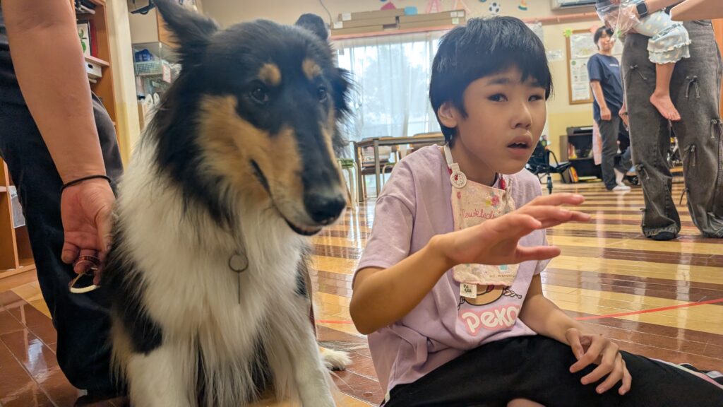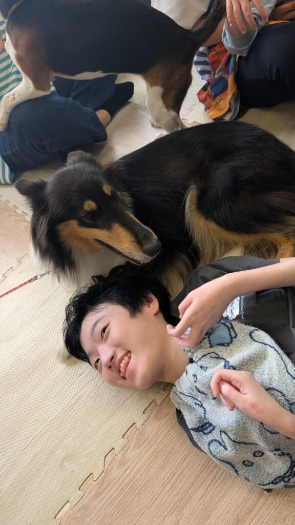 午後はコリー犬との触れ合いです☺