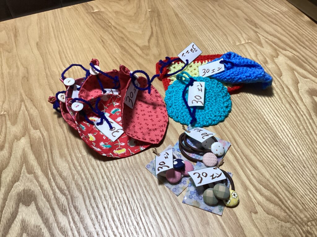 本日はばぁちゃん店で販売する小物の値札作りを♪