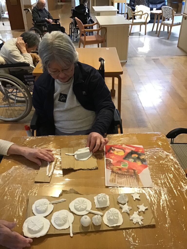 私たちのユニットでは、5月「お茶会」と7月「七夕」の行事をテーマに作品づくりを担当することになりました。