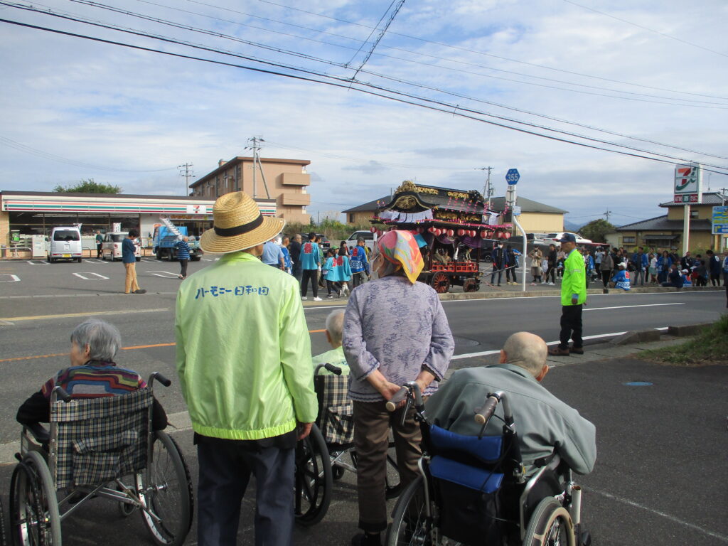 施設の近くまで太鼓台が来たので、お客様と見に行ってきました。