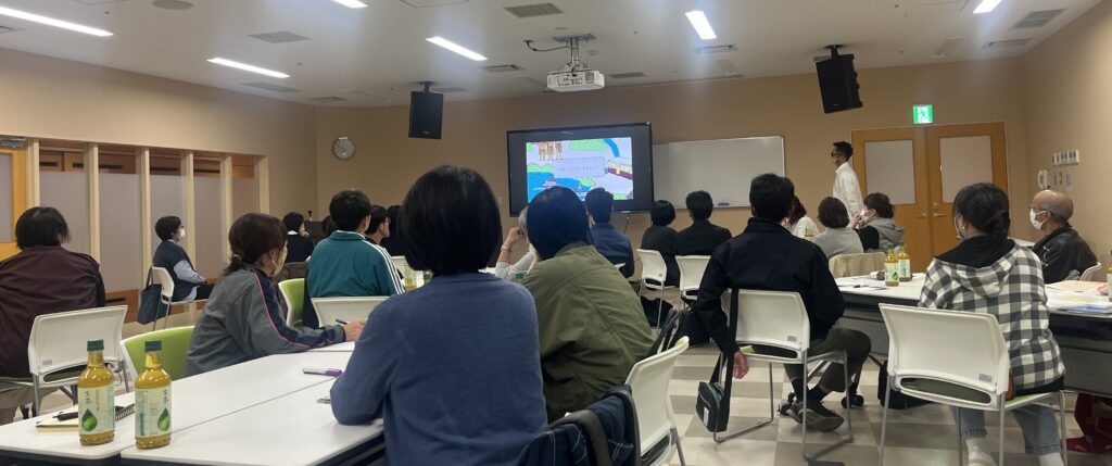 町内の小中学校・高校で認知症の講座を開催していましたが、その際アンケートで認知症の講座を夜に開催して欲しいという要望があり、今回初めて認知症世界の歩き方を夜に開催しました。