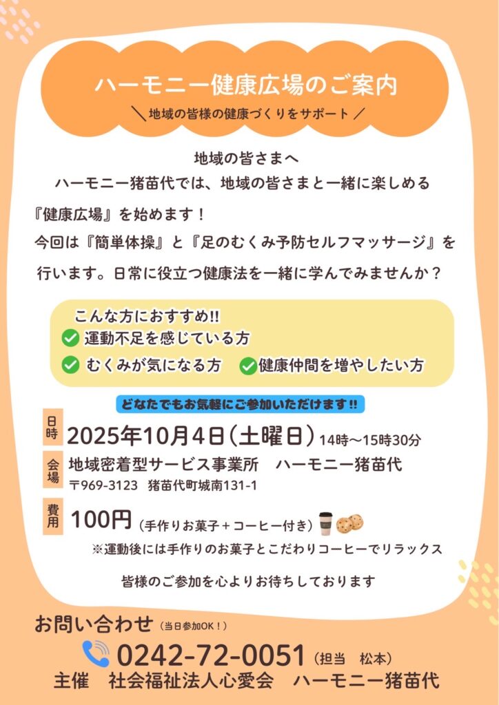 ハーモニー猪苗代では皆様と一緒に楽しめる健康広場を始めました!
